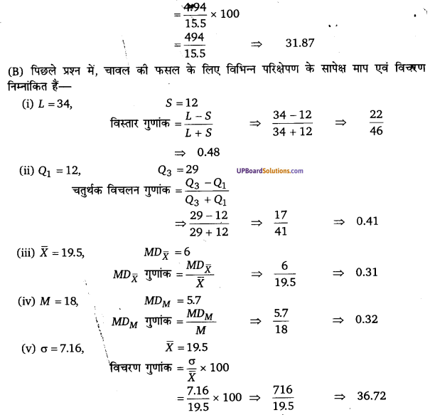 UP Board Solutions for Class 11 Economics Statistics for Economics Chapter 6 Measures of Dispersion (परिक्षेपण के माप)