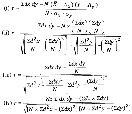 लघु रीति द्वारा सहसम्बन्ध गुणांक के निम्नलिखित चार सूत्र हैं.-