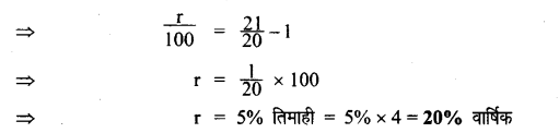 किसी थन् का 2 वर्ष में चक्रवृद्धि ब्याज से मिश्रधन 2400.00 रु० तथा वर्ष 3 में मिश्रधन 2520.00 रु० हो जाता है तो वार्षिक ब्याज दर होगी।