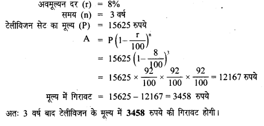 एक रंगीन टेलीविजन सेट का मूल्य 15625 रुपये है। यदि उसको मूल्य प्रतिवर्ष 8% घटता है। तो 3 वर्ष के बाद उसके मूल्य में कुल कितनी गिरावट आएगी? ।